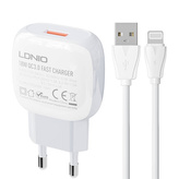 Nástěnná nabíječka LDNIO A1307Q 18 W + kabel Lightning