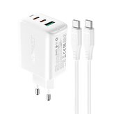 Acefast 2w1 ładowarka sieciowa 2x USB-C / USB-A 65W, PD, QC 3.0, AFC, FCP (zestaw z kablem USB-C 1.2m) biały (A13 white)
