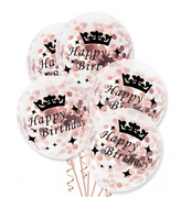 Průhledné balonky Happy Birthday s rose gold konfetami - 30 cm, 5 ks