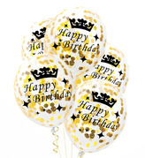 Průhledné balonky Happy Birthday s zlatými konfetami - 30 cm, 5 ks