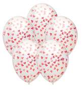 Průhledné balonky s srdíčkovými konfetami, 30 cm - 5 ks