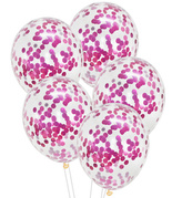 Průhledné balonky s Tmavě růžovými konfetami, 30 cm - 5 ks