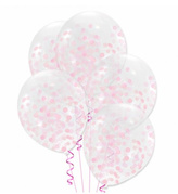 Průhledné balonky se světle růžovými konfetami, 30 cm - 5 ks