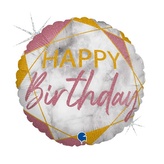 Foliový balonek mramorový Happy Birthday Rose Gold, 45 cm