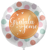 Foliový balonek Gratulujeme Barevné puntíky CZ - 43cm