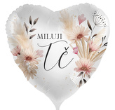 Foliový balonek Miluji tě - růžové květy CZ - 43cm