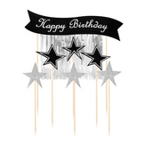 Dekorace na dort stříbrná - Happy Birthday Hollywood, 7 ks