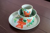Harry dětská jídelní sada-talíř,miska,hrnek matově zelená Organic KOZIOL