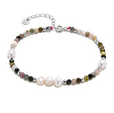 AU4022 Náramek na kotník přírodní Turmalín a perličky, stříbro AG925
