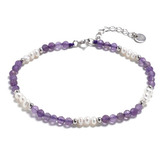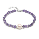AU0045 Minerální náramek přírodní Ametysty a perla, stříbro AG925