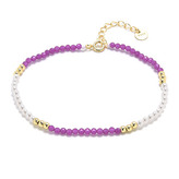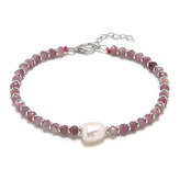 AU0012 Zlacený minerální náramek přírodní Rubín a perly, stříbro AG925
