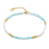 AU0009 Zlacený minerální náramek přírodní Amazonit a perly, stříbro AG925