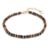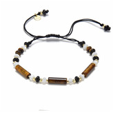 AU0027 Minerální náramek přírodní Tygří oko, Perleť a Černý achát, stříbro AG925