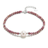AU0005 Minerální náramek přírodní Rodonit a perly, stříbro AG925