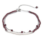 AU0011 Minerální náramek přírodní Granát a perly, stříbro AG925