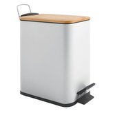 Spirella pedálový odpadkový koš ERIK, bílá, ocel, bambusové víko, 5 L