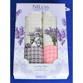 Dárkové balení 2 ks bavlněných utěrek, Levandule s růžovým okrajem a kolo, 50 x 70 cm