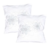 Návlek na polštář, Stříbrno šedé vyšívané květy, bílý, 40 x 40 cm