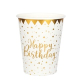Papírové kelímky bílé se zlatými hvězdami Happy Birthday 270 ml - 10 ks
