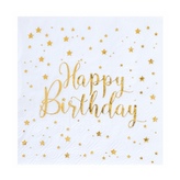 Papírové ubrousky bílé se zlatými hvězdami - Happy Birthday 20 ks