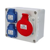 Zás. krabice 3069 IP54 2x230V s ochr. kolíkem, 1x400V/16A/5, 170x140x90mm, hladké boky