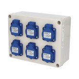 Zás. krabice 3066 IP54 6x230V s ochr. kolíkem, 235x182x95mm, hladké boky