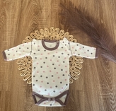 Kojenecké body, dl. rukáv Mamatti, zap. u krku, Puntík - smetana/hnědý lem, vel. 80