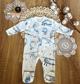 Kojenecký overal bez šlapek Mamatti, Balón, bílo/modrý; 68 (3-6m)