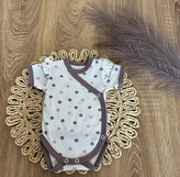 Kojenecké body, kr. rukáv Mamatti, zap. u krku, Puntík - smetana/hnědý lem, vel. 80; 80 (9-12m)