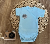 Kojenecké body, kr. rukáv Mamatti, zap. u krku, Dino park - modré, vel. 80; 80 (9-12m)