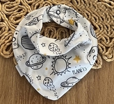Dětský bavlněný šátek na krk Mamatti, Kosmos - bílá s potiskem