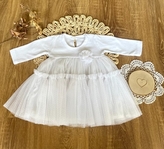 Šaty s tylem dl. rukáv, Srdce, Mamatti, smetanovo/bílé, vel. 92; 92 (18-24m)