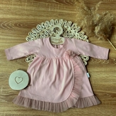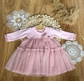 Šaty s tylovým lemem dl. rukáv, Srdce, Mamatti, pudrové, vel. 80; 80 (9-12m)