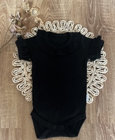 Dětské body, kr. rukáv Mamatti, zap. u krku, Baby Mouse - černé s volánky, vel. 98; 98 (2-3r)