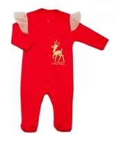 Mamatti Kojenecký bavlněný overálek s volánky Vánoce, červený; 56 (1-2m)