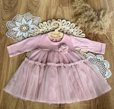 Šaty s tylovým lemem dl. rukáv, Srdce, Mamatti, pudrové, vel. 92; 92 (18-24m)