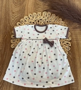Bavlněné šaty s mašličkou, kr. rukáv, Puntík, Mamatti, smetanové s potiskem, vel. 92; 92 (18-24m)
