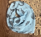 Dětský bavlněný šátek na krk Mamatti, Dino park - modrá s potiskem; univerzální