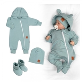 Rostoucí teplákový overal pro miminko, čepice, botky, 3D, Nature - ledově mátový; 56/62 (0-3m)
