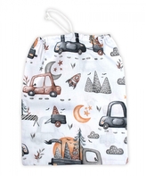 Pytlík na přezůvky 40x32cm, bavlna, Auta - bílá/šedá