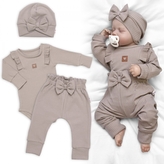 Žebrovaná rostoucí souprava 3D, Baby Girl - taupe; 56/62 (0-3m)