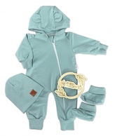 Rostoucí teplákový overal pro miminko, čepice, botky, 3D, Nature - ledově mátový, 80/86; 80/86 (12-18m)