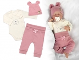 Zavinovací body dl.rukáv, tepláčky a čepička Little Bear, Baby Nellys, pudrová/smetana; 50 (0-1m)