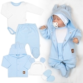 Žebrovaná sada, Star 5D, body, polodup., kabátek, čepička, rukavice - modrá/bílá, 68 ; 68 (3-6m)