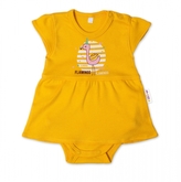 Baby Nellys Bavlněné kojenecké sukničkobody, kr. rukáv, Flamingo - hořčicové, vel. 86; 86 (12-18m)