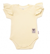 Baby Nellys Bavlněné žebrované body s volánkem, kr. rukáv, Summer Girl - žluté; 56 (1-2m)