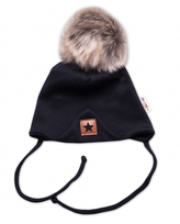 Zimní,podzimní bavlněná dvouvrstvá čepice s bambulí na zavazování Star, černá, vel. 68/80; 68-80 (6-12m)