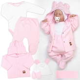 Žebrovaná sada, Star 5D, body, polodupačky, kabátek, čepička, rukavice - růžová, bílá,62 ; 62 (2-3m)