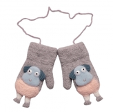 Zimní rukavičky se šňůrkou a kožíškem, Ovečka, Baby Nellys, šedé, 98/104, 13cm; 98-104 (2-4r)