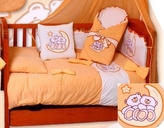Mantinel s povlečením Terjan - Medvídci na měsíčku - jersey losos; 120x90